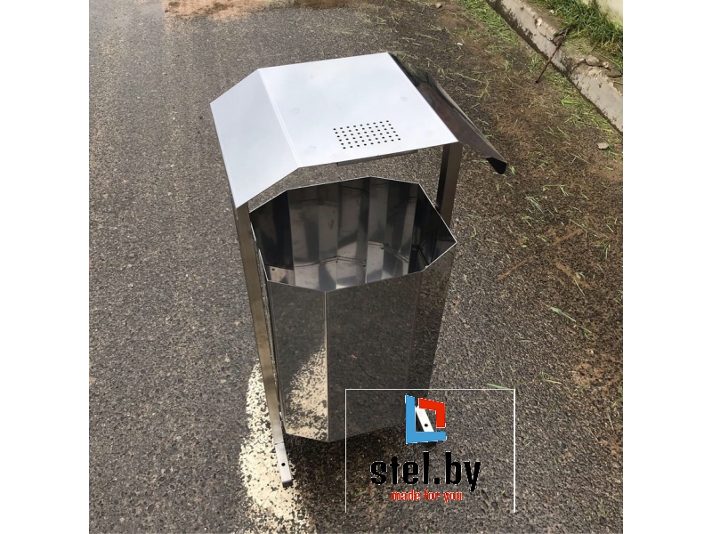 Урна уличная предназначена для сбора мусора. 300х500х1150 мм, выполнена полностью из нержавеющей стали (AISI 430, 304)