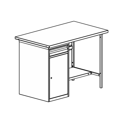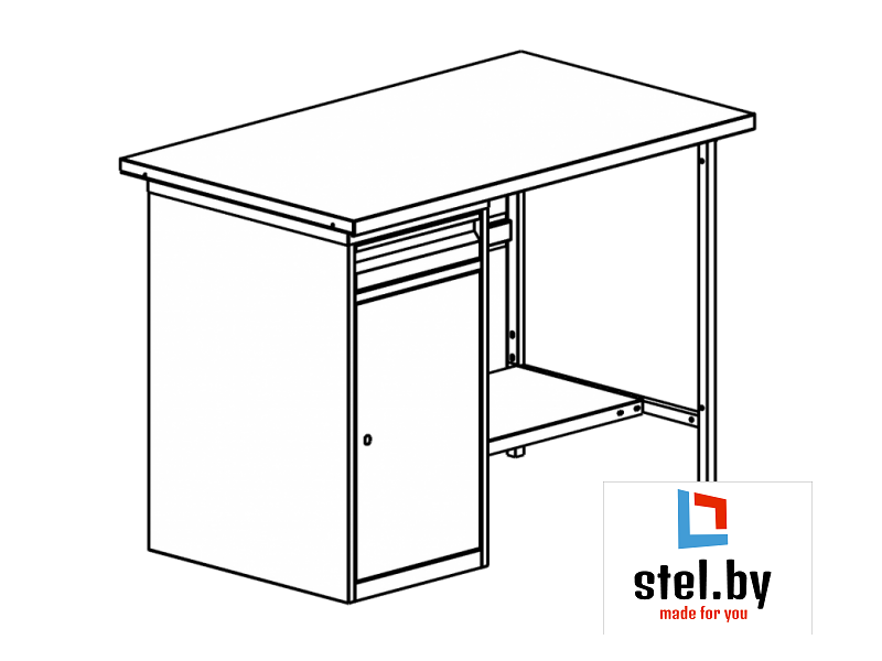 Одна тумба с дверцей и шуфлядой. Одна регулируемая полка.